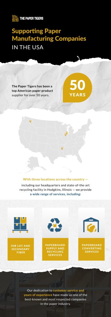 The Paper Tigers has been a top American paper product supplier for over 50 years. We specialize in recycling and paperboard sales and have become a trusted partner for many of the paper industry’s largest manufacturers.
